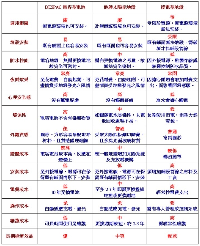 安裝容易,免接電接線,甚至可以很容易在既有地坪上安裝。