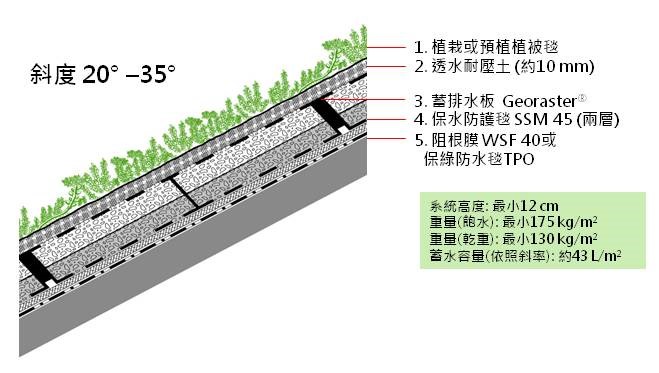 ► 植被層根據日曬的設計不同,將有不同的生長樣貌,特別是在高斜度屋頂