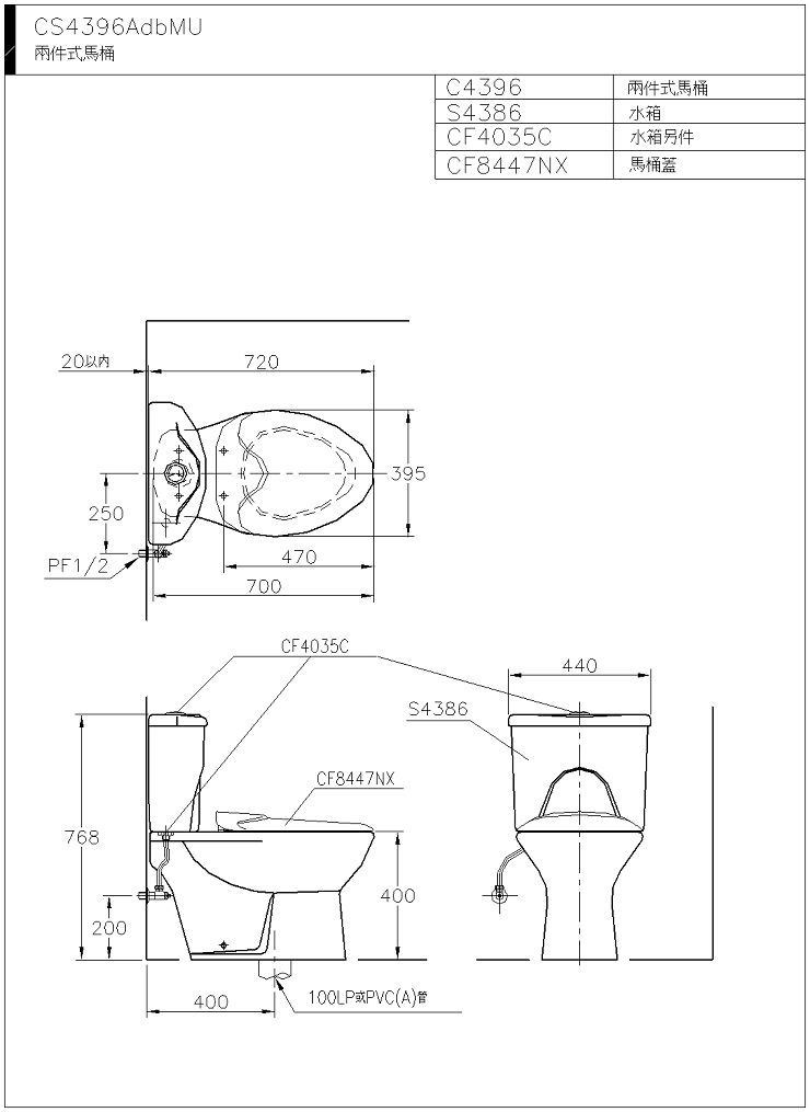 *可選購緩降馬桶蓋CF8447ND NT$ 4,200