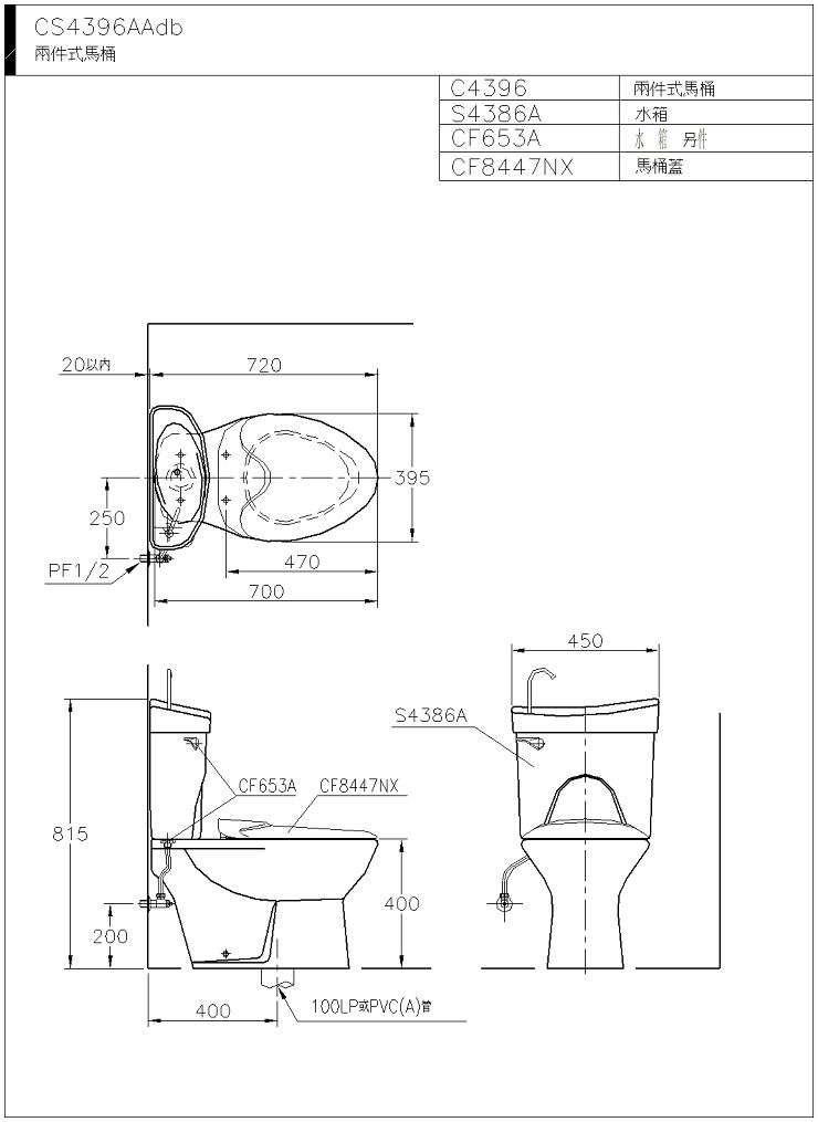 *可選購緩降馬桶蓋CF8447ND NT$ 4,200