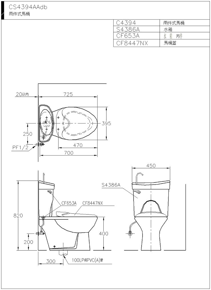 *可選購緩降馬桶蓋CF8447ND NT$ 4,200