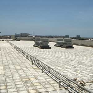 PS板隔熱磚其構成要素是以水泥板與高密度發泡材PS板緊密粘成一體成塊狀隔熱材,利用發泡隔熱材獨立氣泡阻絕空氣產生對流作用(熱交換),而達到隔熱效果。