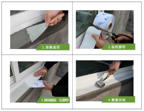 ●施工簡便,可與各式素地基面直接黏著,於潮濕的混凝土基面也可以直接黏著〝一撕(離型紙),一貼(黏貼) - 壓〞即可完成施工
