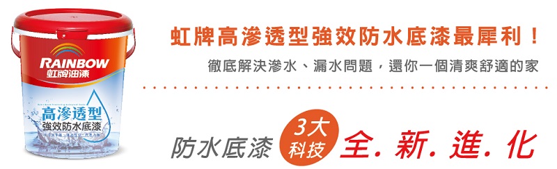 全新虹牌高滲透型強效防水底漆採用獨家I.E.離子滲透科技,施塗後底漆滲透至極小細縫