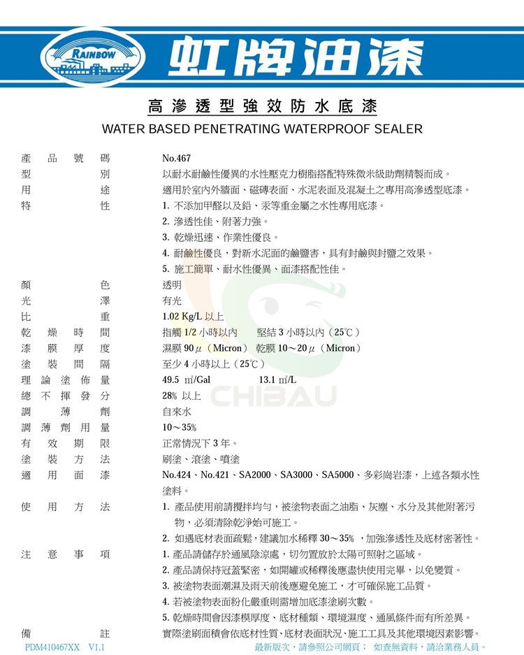 P.S 建議需增加密著促進劑,方可達到防水底漆三大科技功效!