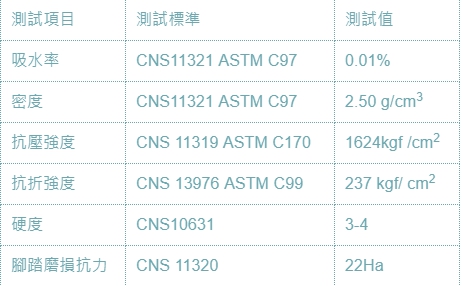 彌補天然石材的色澤不均的缺點。色澤均勻、紋路對稱、搭配較具整體性,適用場合廣泛,為人性化環保建材。