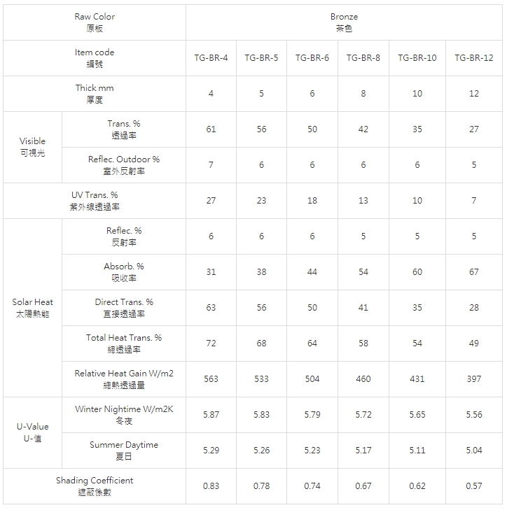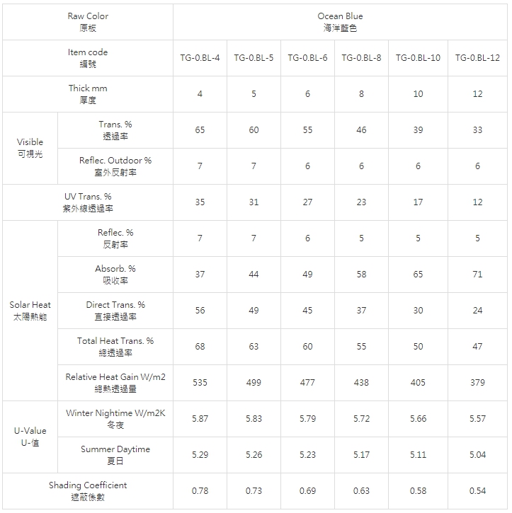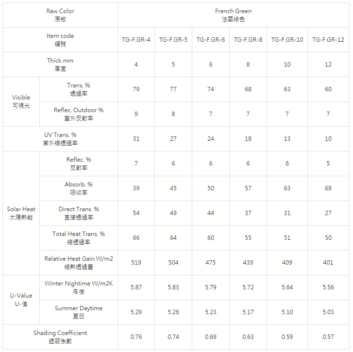 浮式色板玻璃是以調拌適量色料配方之玻璃膏經控制閘門進入錫槽,由於地心引力及本身表面張力作用浮於熔融錫表面上後,再進入徐冷槽,使玻璃兩面平滑均勻,波紋減少而製成。包括法國綠色、海洋藍色、茶色、灰色等。