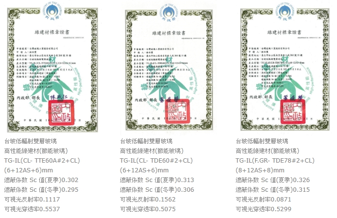 Low-E雙層玻璃之輻射率為0.02 ~ 0.11,一般未鍍膜玻璃輻射率為0.84。