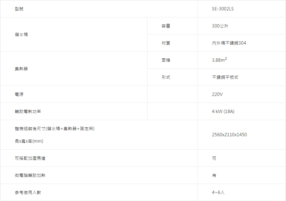 SE-3002LS太陽能熱水器