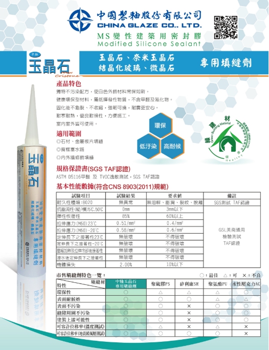 奈米防霉抗污細縫填縫劑TG69
