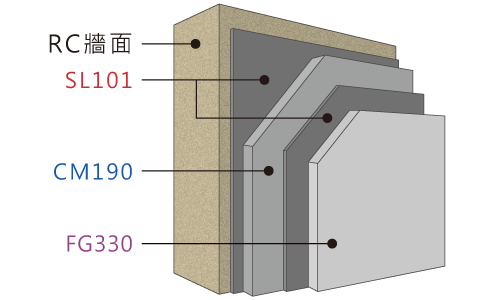 本產品為高分子乳膠,需加水搭配CM190及FG330拌和使用,加強砂漿性能。