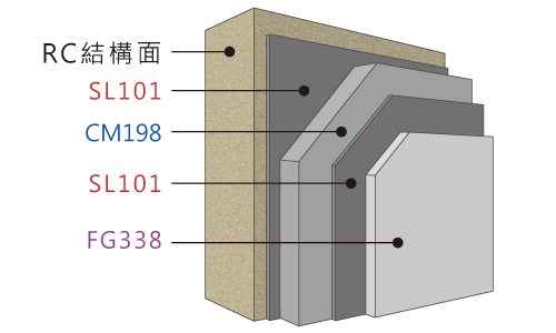 1.底材塗抹土膏(SL-101),為抗裂粉光材與底材之黏結層。