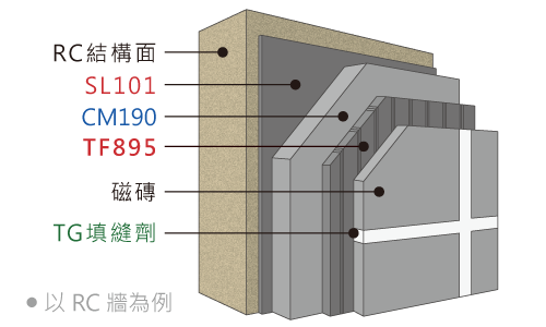 | 用途 | 石材、大型拋光石英磚或重型磁磚之RC牆、輕隔間牆或鋼板面黏著 |