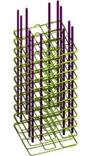 在鋼筋籠組裝的部分,可先使用樹根小號鋼筋將5個一筆箍依照設計間距定位,而後串在一起並綁紮成箍筋籠,之後再將每個箍筋籠單元分別穿過主筋,所以將可省去金箍筋一一穿過主筋的工作,