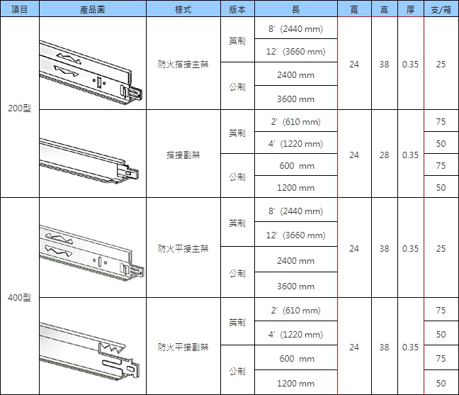 最大的特色是平接式防震接頭設計,並沖有防火孔,故稱為防火抗震型T-BAR。