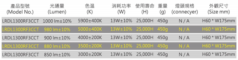 • 色溫可調6000~3000K,也可直接設定為6000K、4000K、3000K