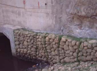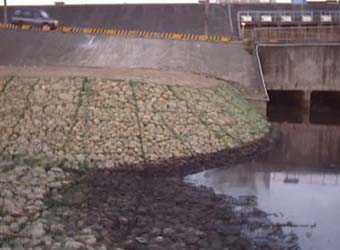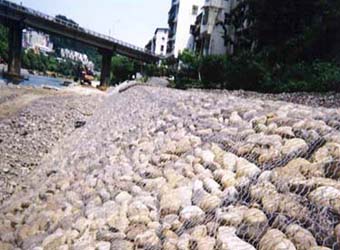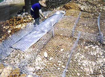 石籠護墊厚度通常為50公分(或更小),特別適用於河道堤防護坡工程,底部襯以合纖透水織布,具有極佳之消能作用,比較混凝土護坡工更具有曲饒性、透水性及耐候性,並可植生綠化,符合環保要求。