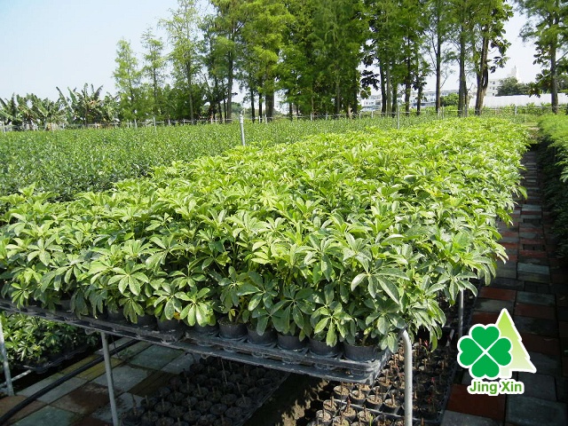 屬於常綠性灌木,葉色有濃綠或深淺不一,顏色優美或優雅,因葉片為環狀生長,像是鵝掌狀,故有此稱。