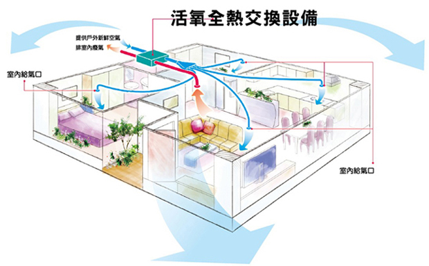 綜觀現代建築極度氣密、隔絕,可有效阻擋陽光與額外的空調耗能。但是空氣汙染的嚴重,要維持室內空氣品質不易。全熱交換器排出室內混濁空氣,引進室外新鮮空氣,以達改善室內空氣品質的效果,提供居家舒適的環境。