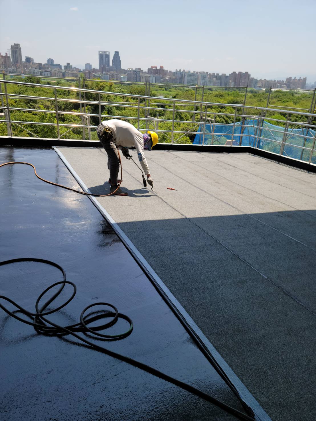 屋頂防水設計-瀝青底油+4mm岩片粗面自黏式防水毯