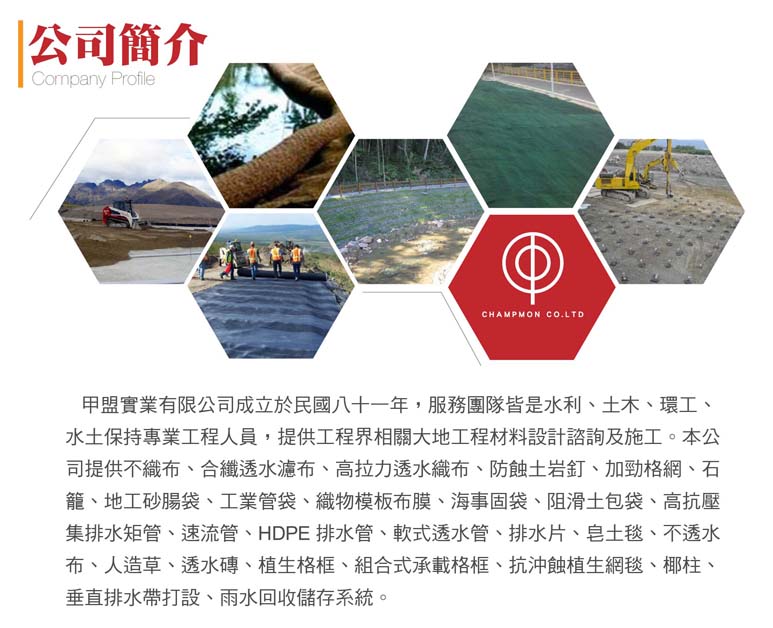 護坡擋土,透水材,防水材,景觀造景,生活汙水處理設備,